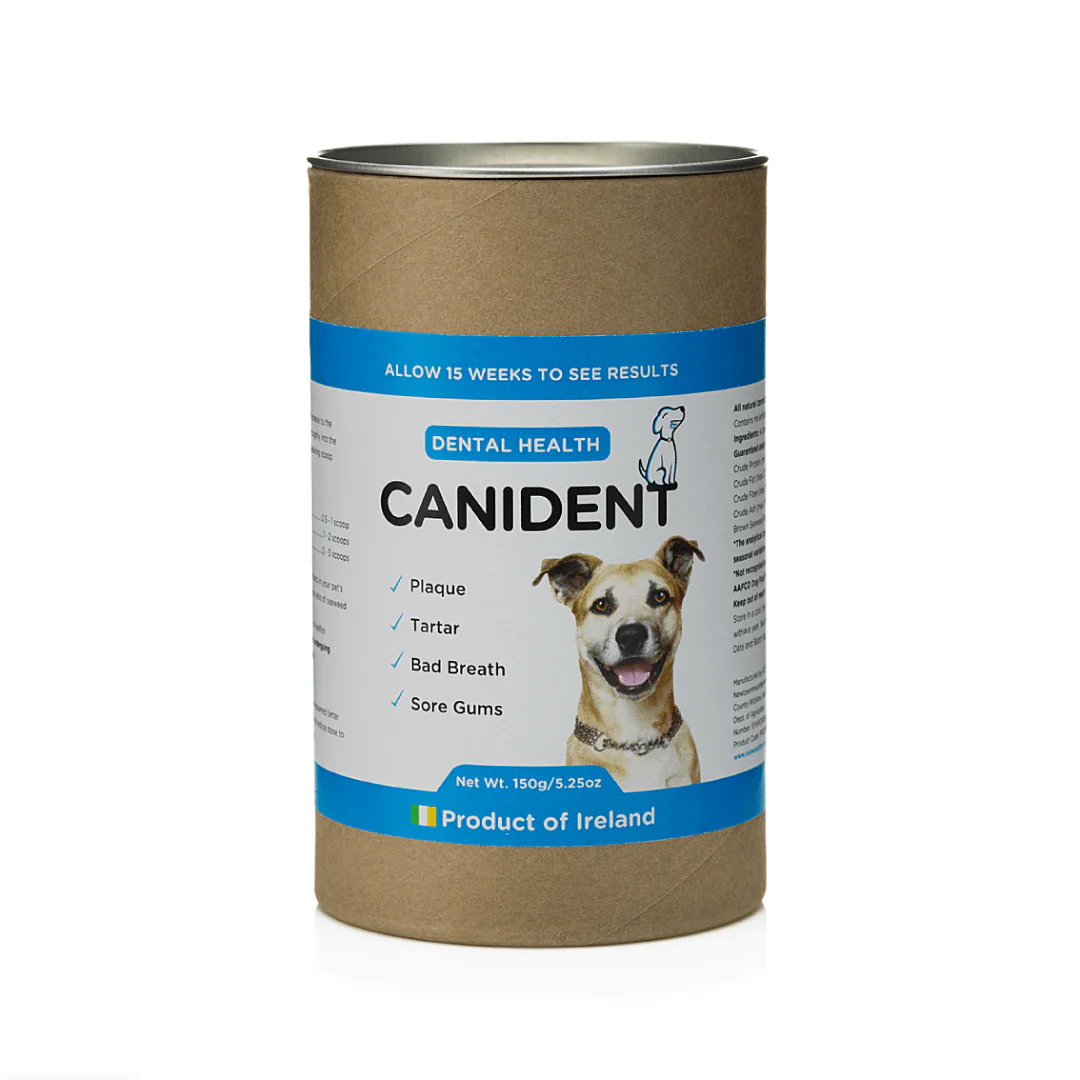 Canident je 100 % naravni prašek iz skrbno izbranih organskih rjavih irskih morskih alg, ki vsakodnevno in nežno podpira zdravje zob ter dlesni tvojega psa.