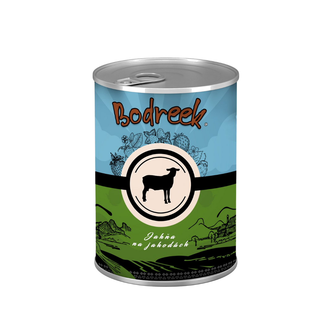 Bodreek Jagnje z jagodo je naravna mokra hrana za pse z zelo visokim deležem kakovostnega mesa jagnjetine. Receptura združuje izbrano meso in sadje ter tako zagotavlja okusno in hranljivo prehrano za pse vseh pasem.