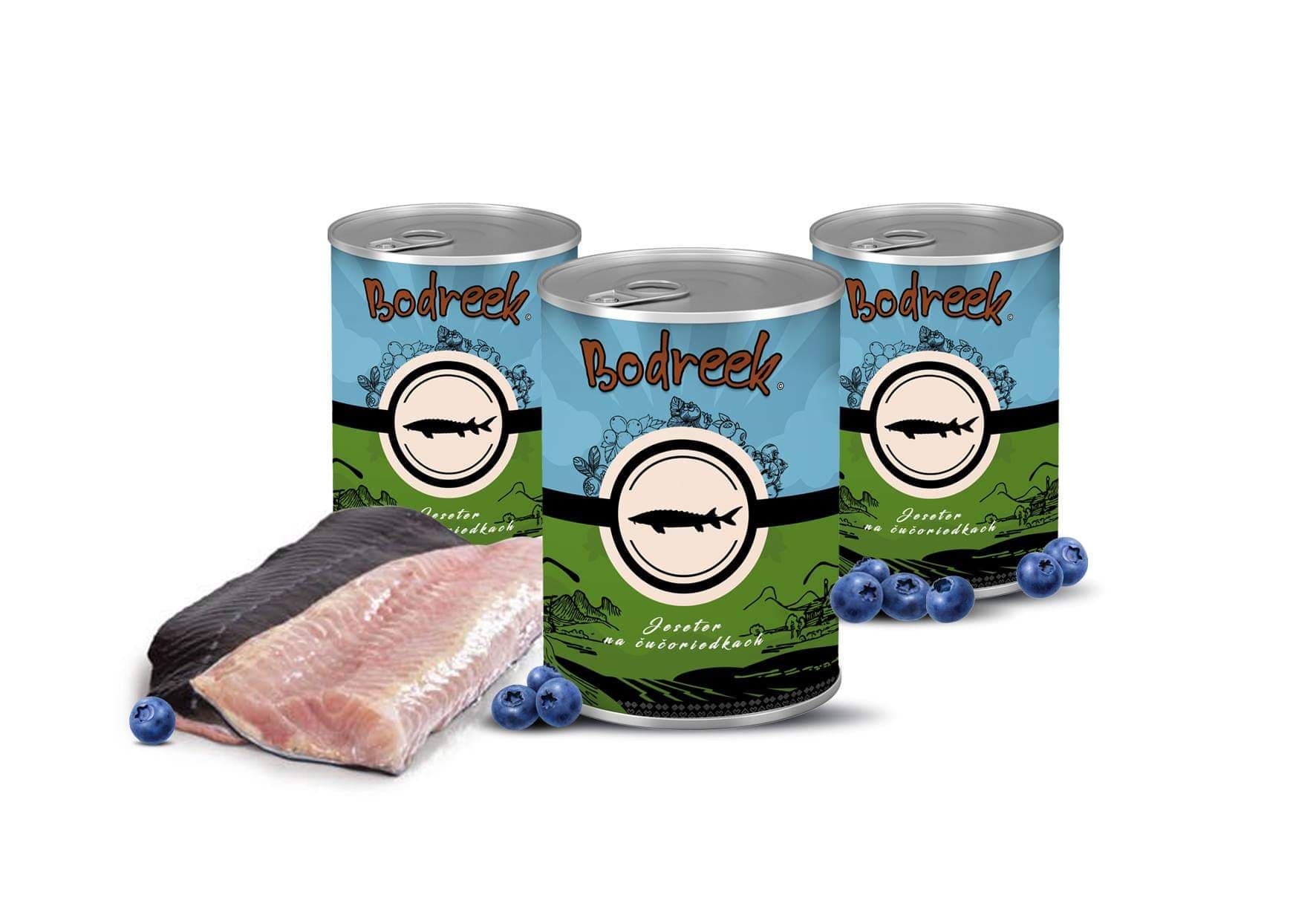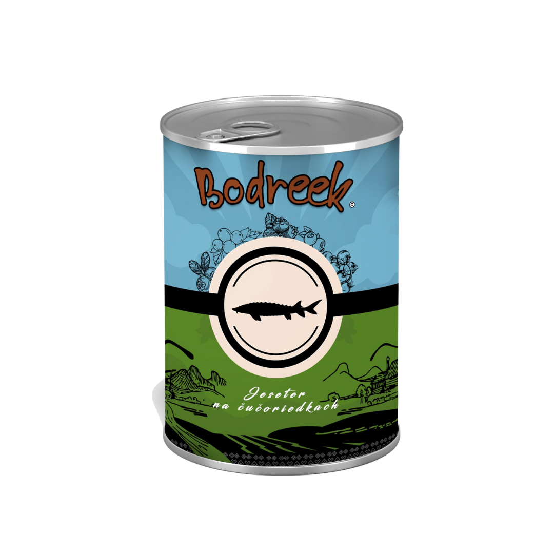 Mokra popolna hrana Bodreek Jeseter z borovnico vsebuje visok delež mesa jesetra, ki je cenjeno zaradi svojega bogatega hranilnega profila in odličnega okusa. Kombinacija ribjega mesa in borovnic ustvarja harmoničen obrok, ki psu zagotavlja kakovostne beljakovine, vitamine in antioksidante.