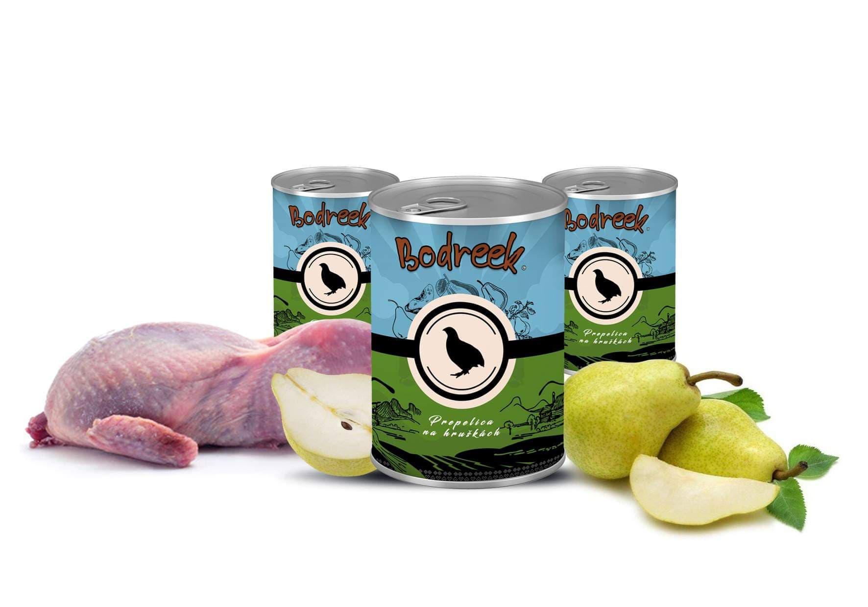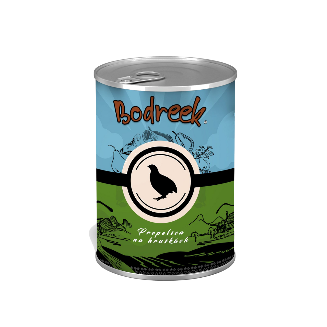 Bodreek Prepelica z hruško je naravna mokra hrana za pse z zelo visokim deležem kakovostnega mesa prepelice. Receptura temelji na nežnem mesu prepelice, ki je znano po svoji izjemni prebavljivosti in bogatem okusu.