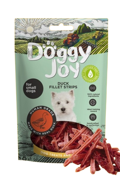 Priboljški Doggy Joy so narejeni iz kakovostnega mesa po recepturah, razvitih za zdravo nagrajevanje psov, brez umetnih barvil in nepotrebnih dodatkov.