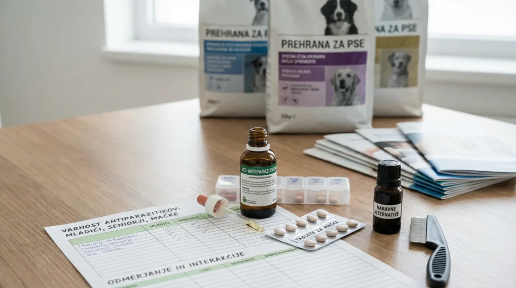 V tem vodniku ti kot veterinarka razložim posebnosti, ki resnično vplivajo na varnost: od starostnih omejitev in telesne mase do interakcij, karence po kopanju, sezonskih prilagoditev in trenutkov, ko je bolje uporabiti mehanske ukrepe. Cilj je jasen: prva izbira naj bo varna, učinkovita in prilagojena prav tvojemu ljubljenčku.